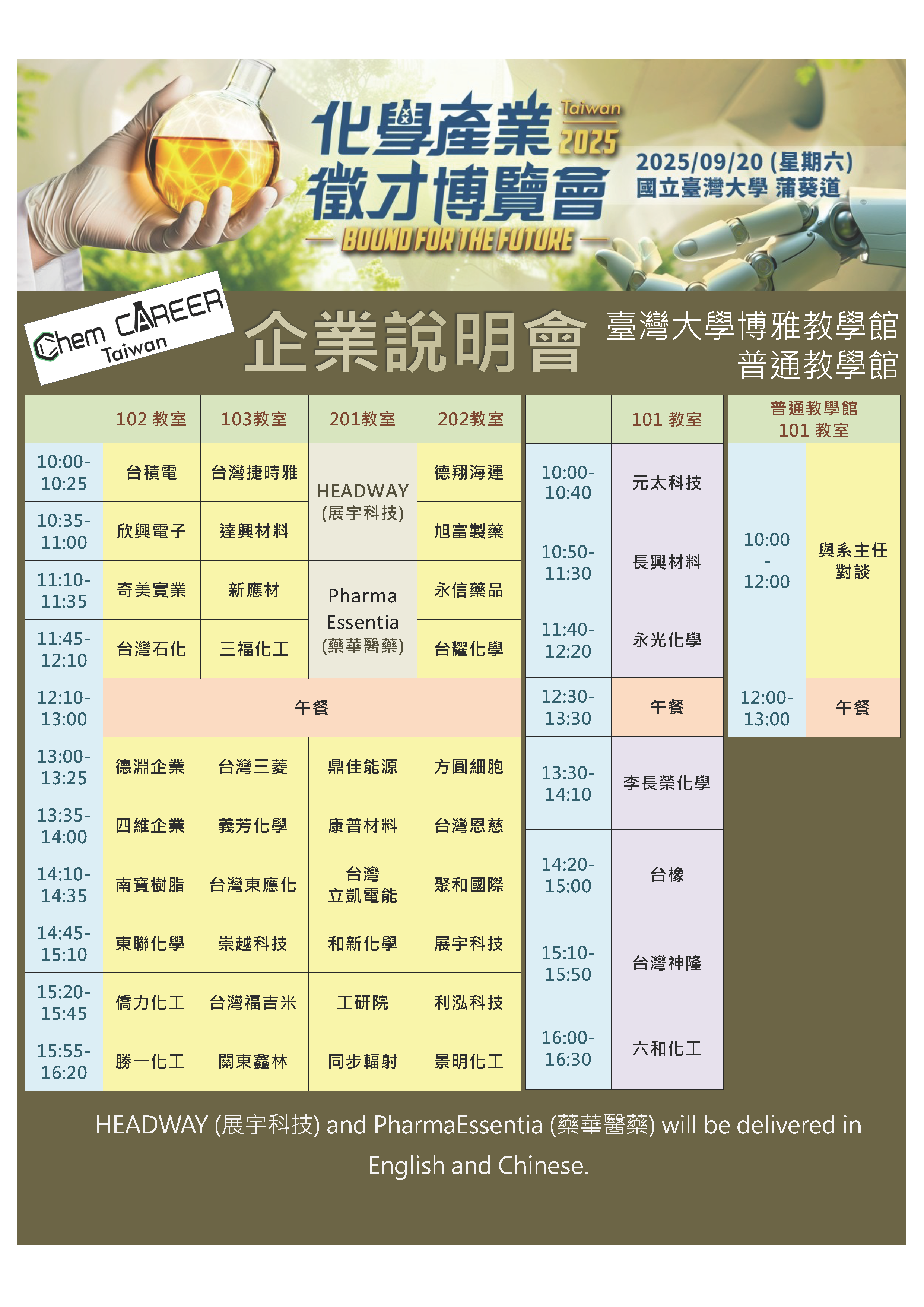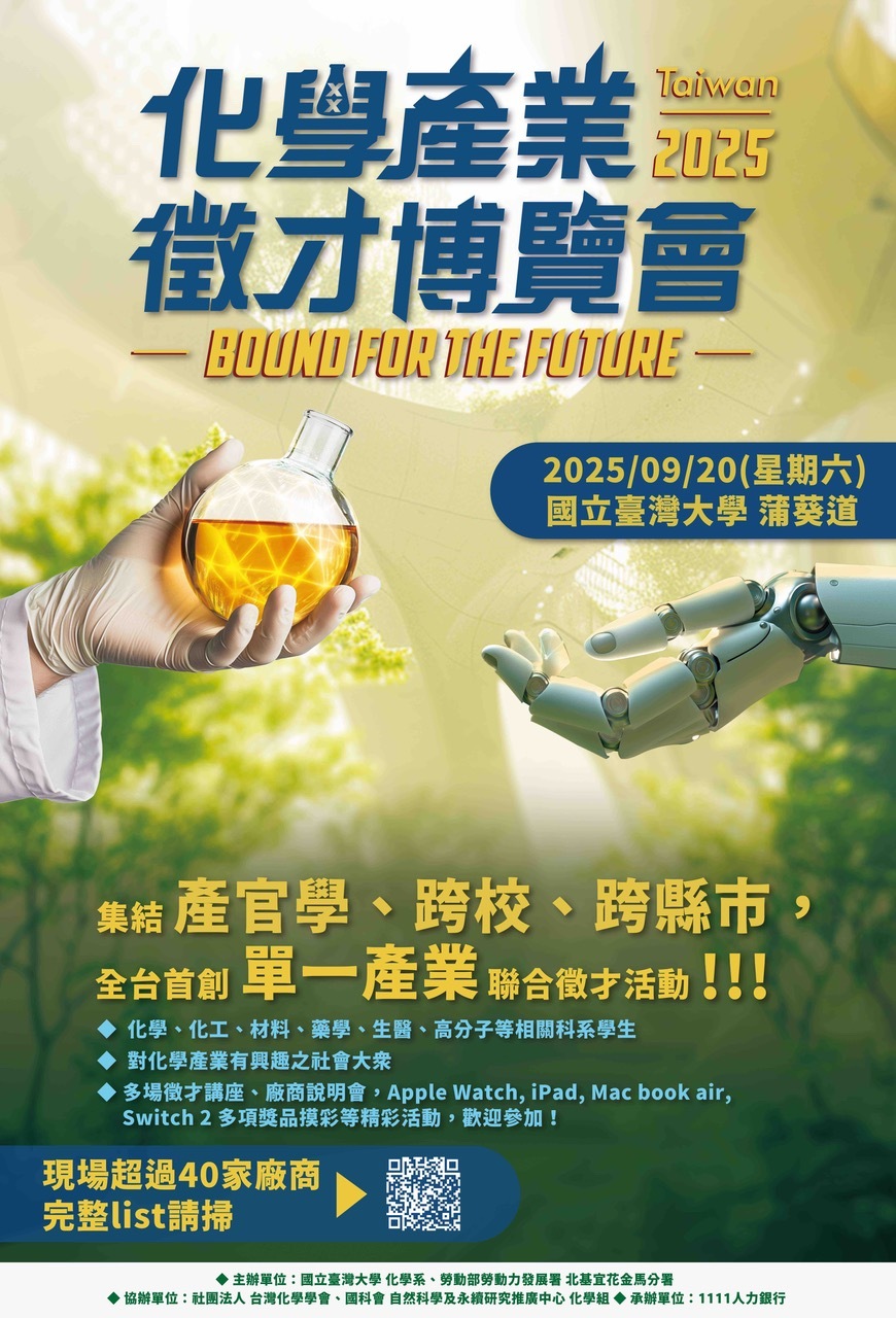 【徵才】2025化學產業徵才博覽會 9/20(六)多場聯合徵才活動 歡迎參加!