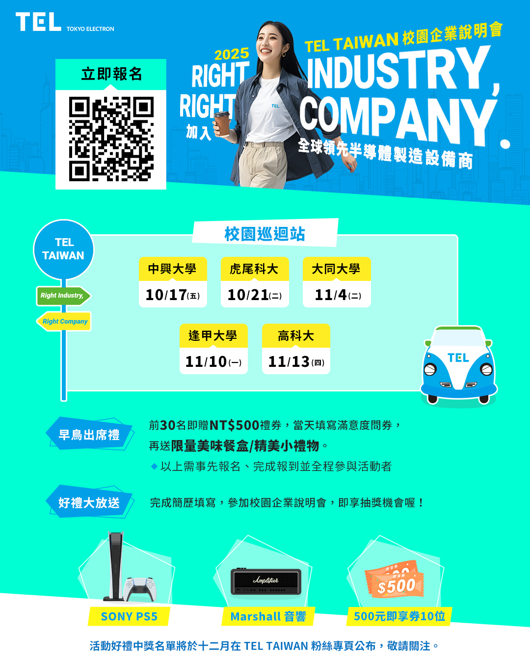 【徵才】11/04 大同大學 | 東京威力科創校園企業說明會 歡迎報名參加!